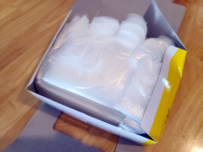 1회용 비닐장갑을 사용하다보면 흔히 겪는 일 중 하나가 종이 케이스가 너무 잘 풀린다는 점이다. 특히 양이 많은 경우엔 더욱더 그런 일이 잦다.