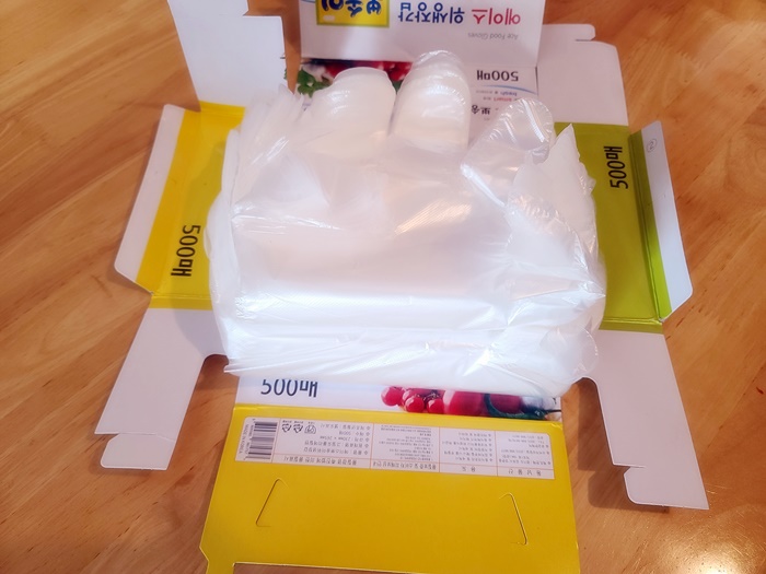 남편은 한 장 뽑아 사용하다보면 2장 이상은 비닐장갑이 나와서 나온 여유분 장갑은 그냥 서랍에 둬 버린다. 물론 그 비닐장갑은 사용하기가 찝찝해 식품을 만질때는 사용하지 않고 다른 용도에만 사용한다.