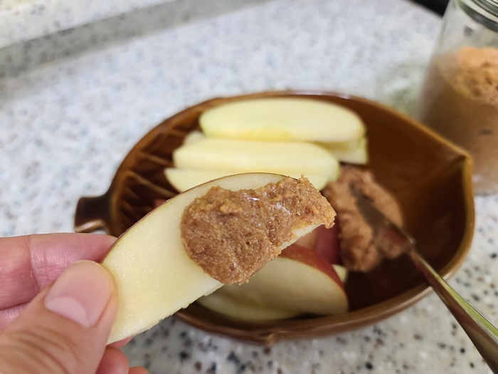 간식이나 한 끼 식사로 손색이 없는 사과와 함께 땅콩버터 곁들여 먹으면 정말 몸에 좋아요. 전 아침 대용이나 간혹 간식이 당길때 이렇게 먹곤 합니다. 땅콩버터 만들어 놓은 것도 많이 사 먹었는데요. 이렇게 직접 만들어 먹으니 가격대비 가성비도 좋고 무엇보다도 첨가물 없이 만들어서 몸에도 좋아서 지금은 구운 땅콩 사 두고 계속 집에서 만들어 먹는답니다. 만들기 쉬우니 한 번 따라 해 보세요~.