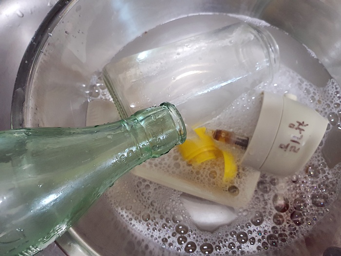 기름병을 깨끗이 세척해 다시 사용하기로 했어요. 그냥 버리면 왠지 아쉽다는 생각이 든건 나만의 생각인지...