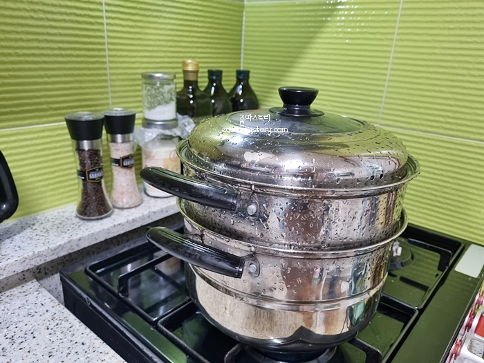 한 솥 쪄내고 또 한 솥 쪄냈어요. 단호박은 이렇게 쪄 낸 뒤 식혀서 냉동보관하면 오래도록 두고 먹을 수 있답니다. 만약 단호박을 자른 뒤엔 3~ 5일 이내로 드시는거 추천해요. 공기 중에 세균에 노출되기 때문에 신선도 뿐만 아니라 곰팡이등이 생길 수 있기 때문입니다. 되도록이면 익힌 뒤 냉동보관 권장합니다.