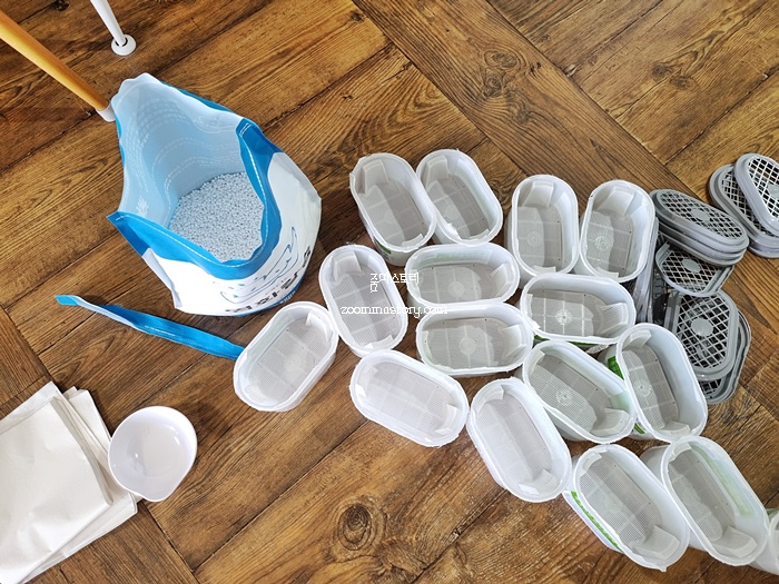 제습기 사용 특성상 방에 틀어 놓을때는 장롱을 활짝 열고 틀고 있긴 하지만 매일 그렇지 못할 때는 습기제거제를 옷장 속에 몇 개씩 넣어둔다. 집을 비우거나 할 때는 주와 장창 제습기를 매일 틀 수 없기에 습기제거제를 두 박스 사서 곳곳에 두고 사용한다. 제습기와 습기제거제를 같이 사용함에도 한 달에 한 번은 교체해줘야 할 정도이다. 그래서 난 언제부터인가 염화칼슘을 구입해서 리필을 하는 방식을 선택했다.